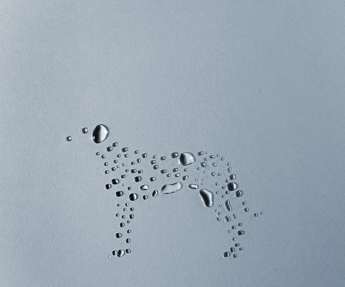 Nasser Hund schüttelt sich und trocknet. Mit Pipette getropft.